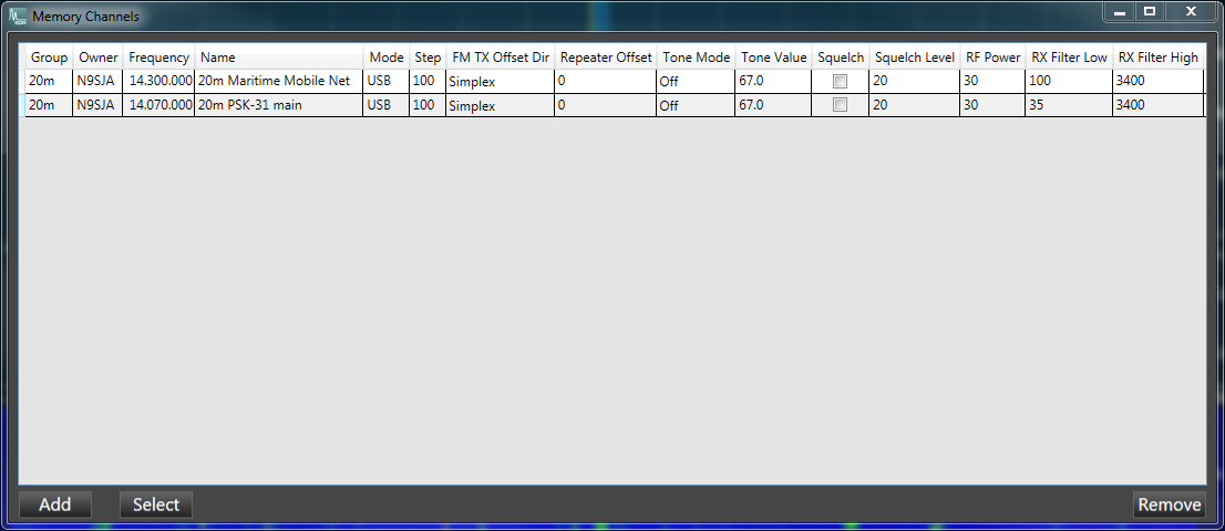 Memories Feature:  This is a great feature so that you can store your favorite frequencies and modes.  It is quite detailed so that you can name the memories, and even crate memory groups to group them all together.  I typically do not use memories, but I put a few in to try it out and was quite happy with the implementation.  I kind of wish however that there could be a small right side dock-able window with memories instead of a new pop-up window.  It would just be nice to streamline the interface a bit better.