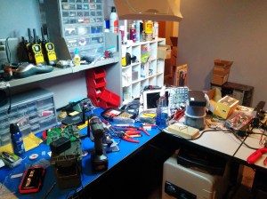 The worst bit for me is the workbench. It seems to collect my mess like a huge magnet. I have purchased the little organizer cabinets and the shelves to properly put things away, but they seldom if ever make it back to their little homes. Every now and then I can convence myself that if I clean up first, then I can work on whatever project I want to. This seems to help keep things tidy for a little while at least.