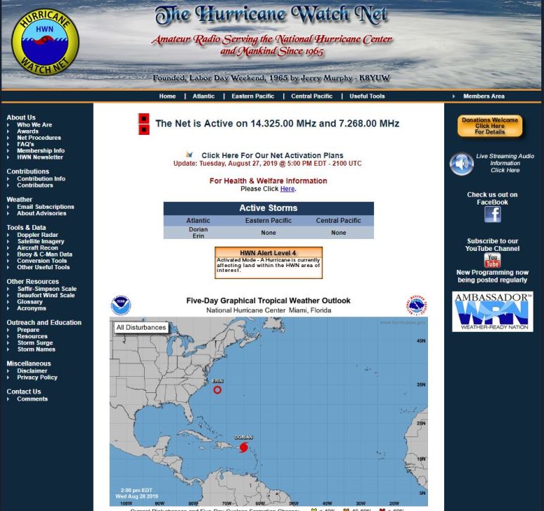 At the time of this blog post I am monitoring Hurricane Dorian which is just off the NE edge of Puerto Rico and then is supposed to strengthen and eventually hit the east coast of the US. The HF Hurricane net will be very active over the next few days so tune in and give it a listen!