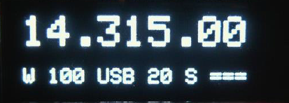The display has the frequency shown at top. Then on the next line starting at the bottom right is the bandwidth selection (W/M/N), the tuning step indicator (10 Hz/100 Hz/1 kHz), the mode (USB/LSB/CW), the keyer speed for CW (mine is set at 14 wpm), and finally an S-meter.
